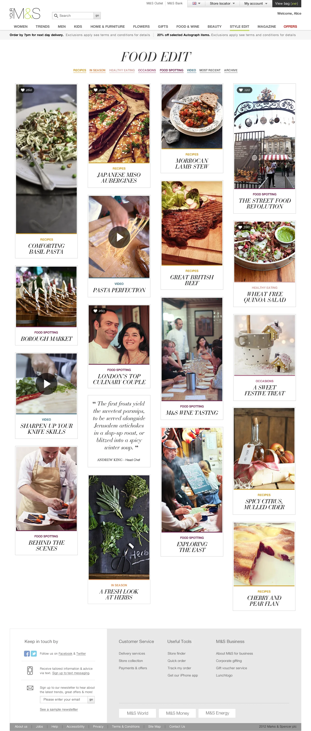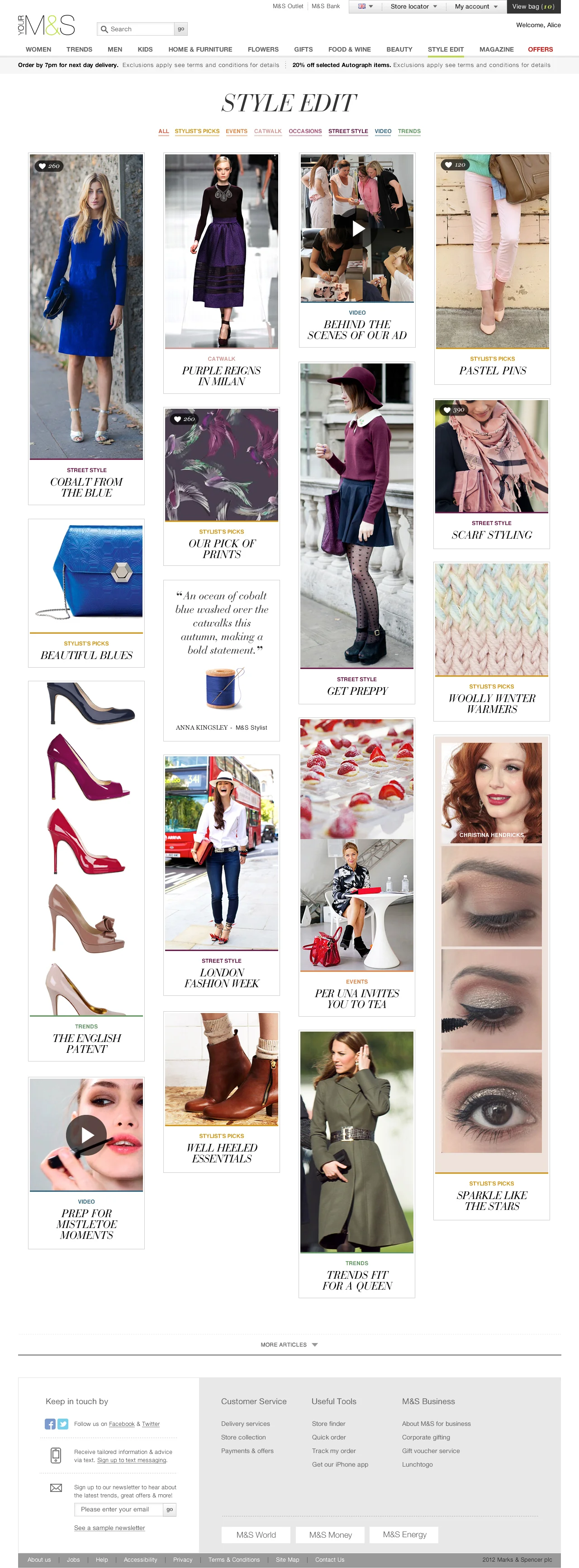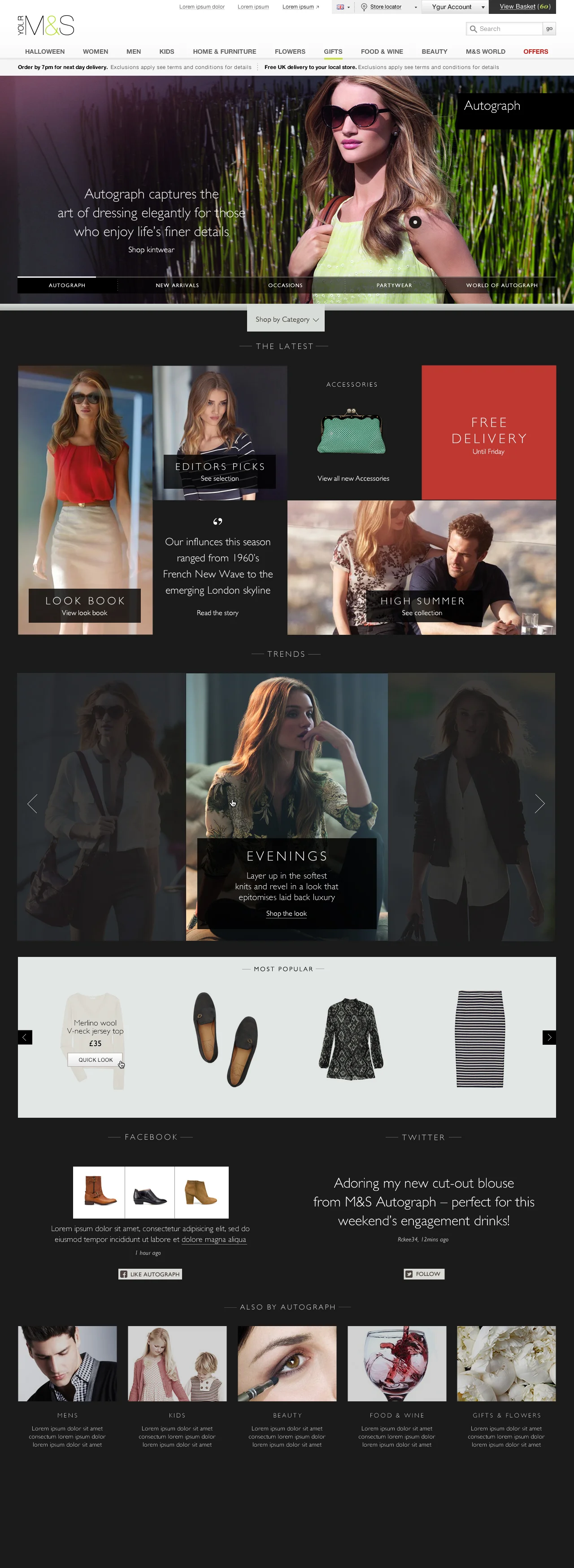 With over 100 years of retail history and 700+ UK stores, M&S has struggled to keep pace with the modern world of retail fashion. Our challenge was to create an inspirational new digital flagship for the UK’s largest fashion retailer. As part of the overall program of work, we designed for Desktop, Tablet, Mobile, Kiosk, Concept Stores and 12 local language sites.